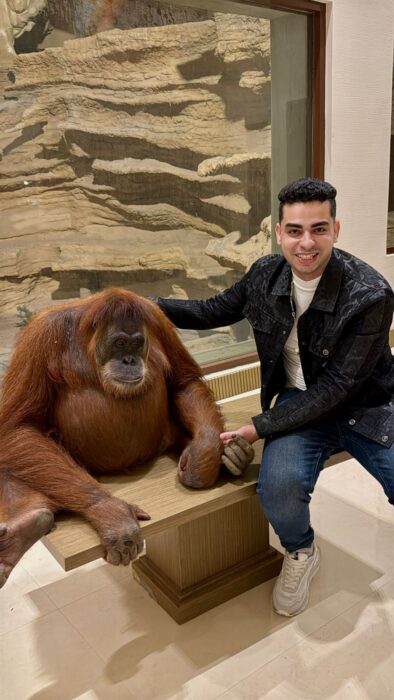 لقد بدا “إنسان الغابة” في الصورة وكأنه يستمع لحديث صامت مع مصطفى، في مشهد يعيد للأذهان الروابط التاريخية القديمة بين الإنسان وبيئته الأولى.